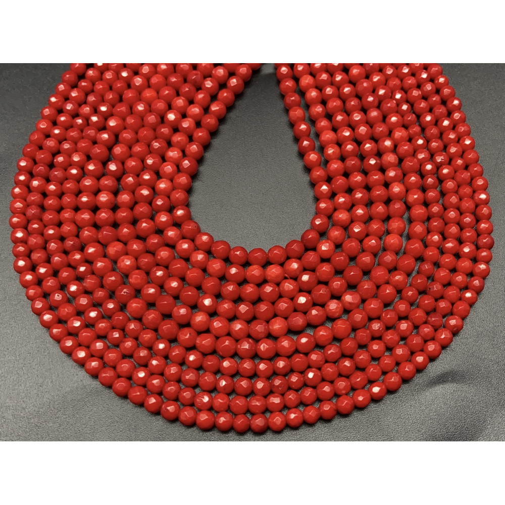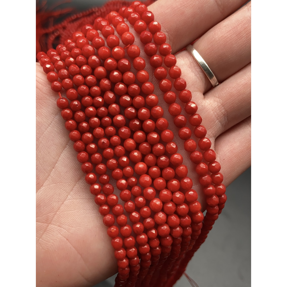 • Каменные бусины, Коралл, красный, тонированный, шарик огранка, 2,5-2,8 мм, длина нити 38 см