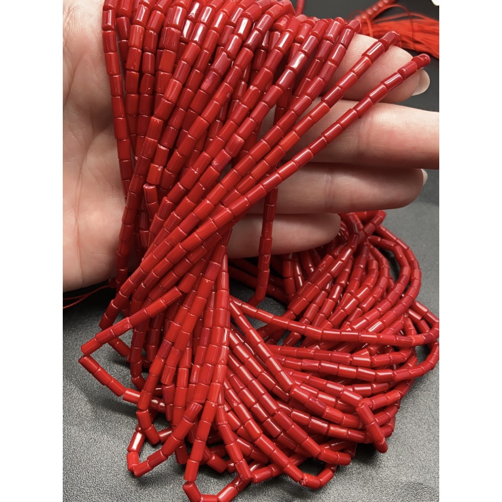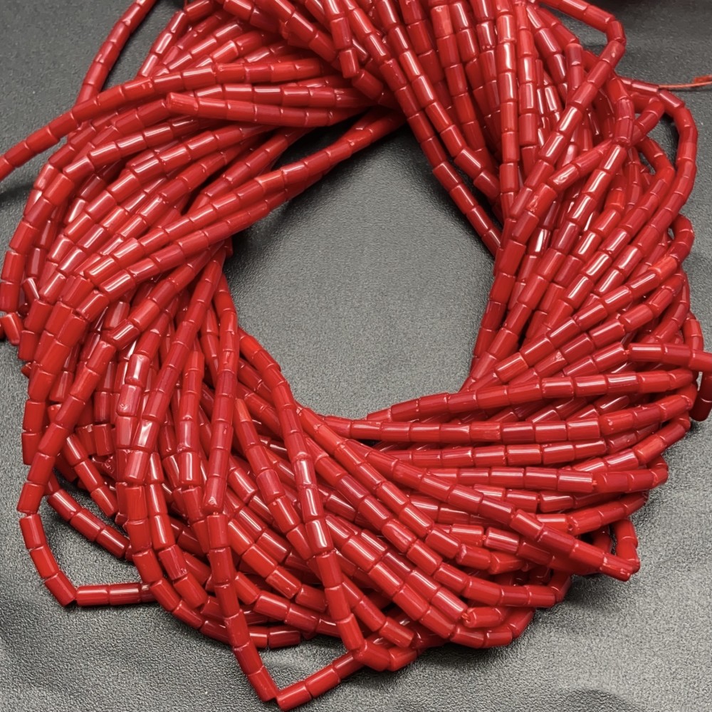 Каменные бусины, Коралл, красный, тонированный, трубочки, 5х3 мм, длина нити 38 см