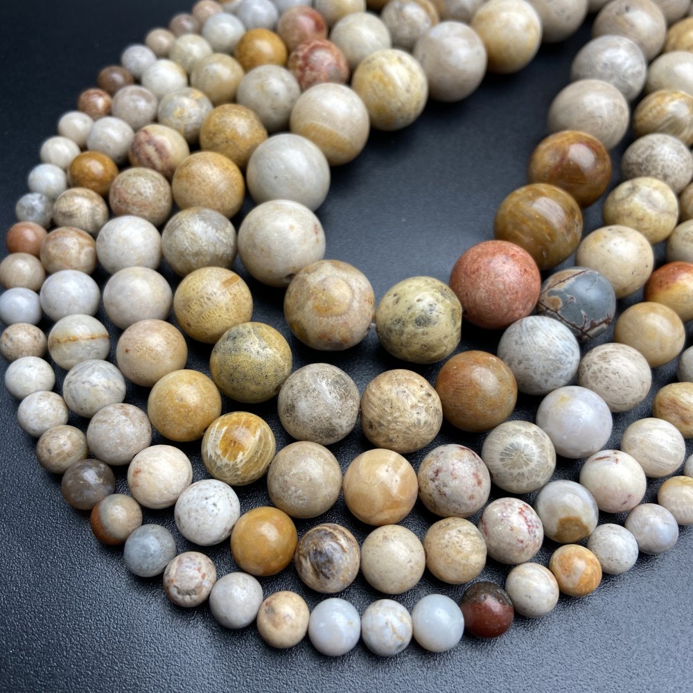 • Каменные бусины, Коралл, окаменелый, шарик гладкий, 10 мм, длина нити 38 см