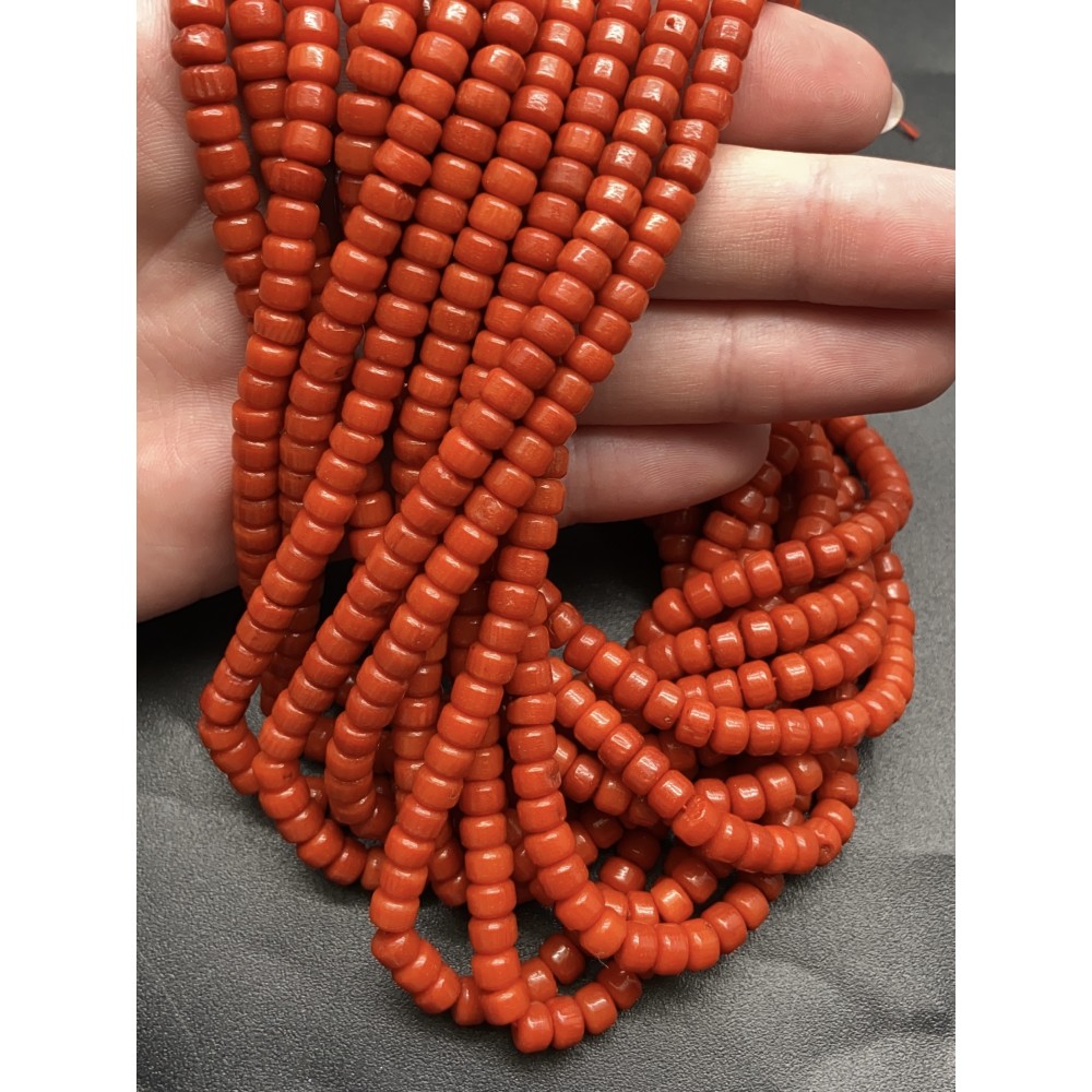 Каменные бусины, Коралл, оранжевый, бочонок, 4 х 5 мм, длина нити 38 см