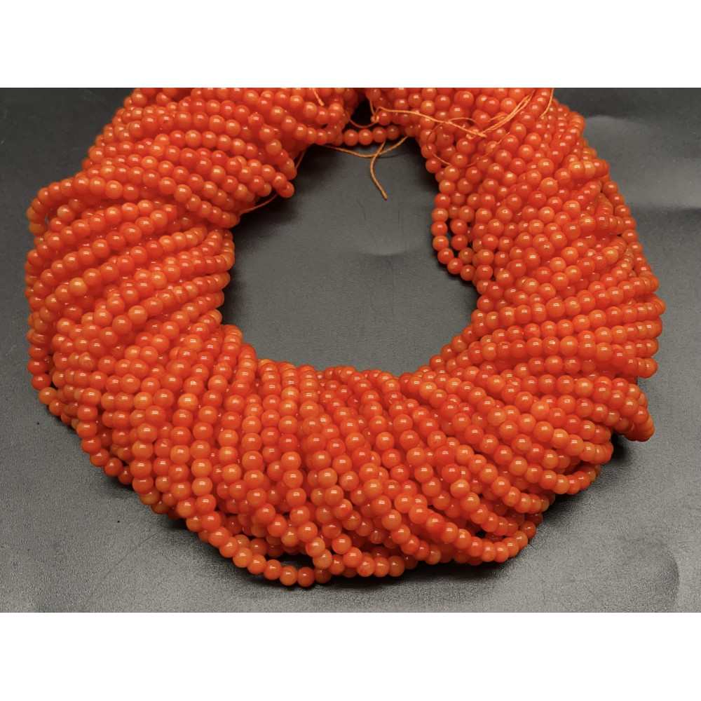 • Каменные бусины, Коралл, оранжевый, тонированный, шарик гладкий, 3 мм, длина нити 38 см