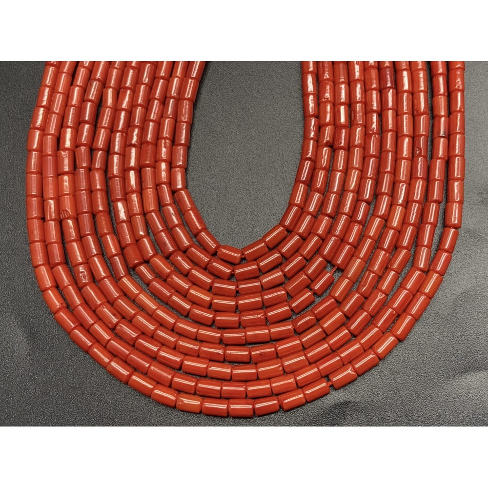 • Каменные бусины, Коралл, оранжевый, трубочки, 5х3 мм, длина нити 38 см