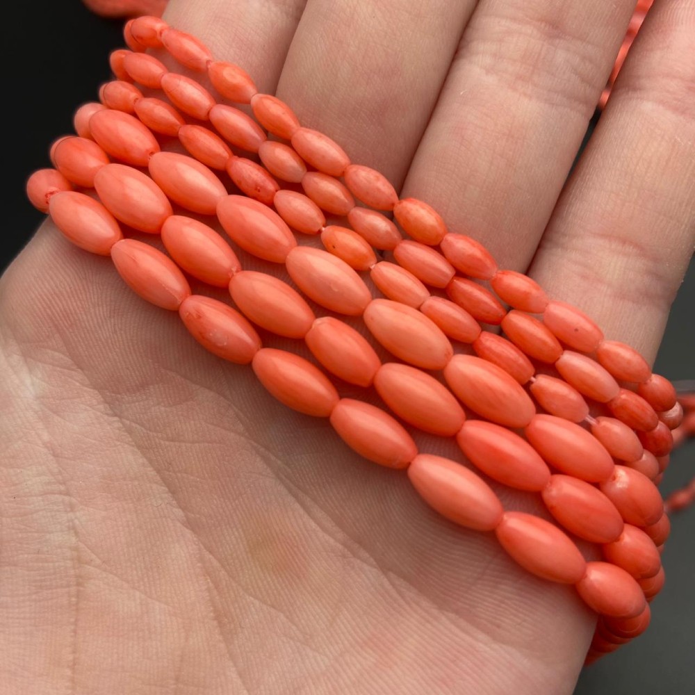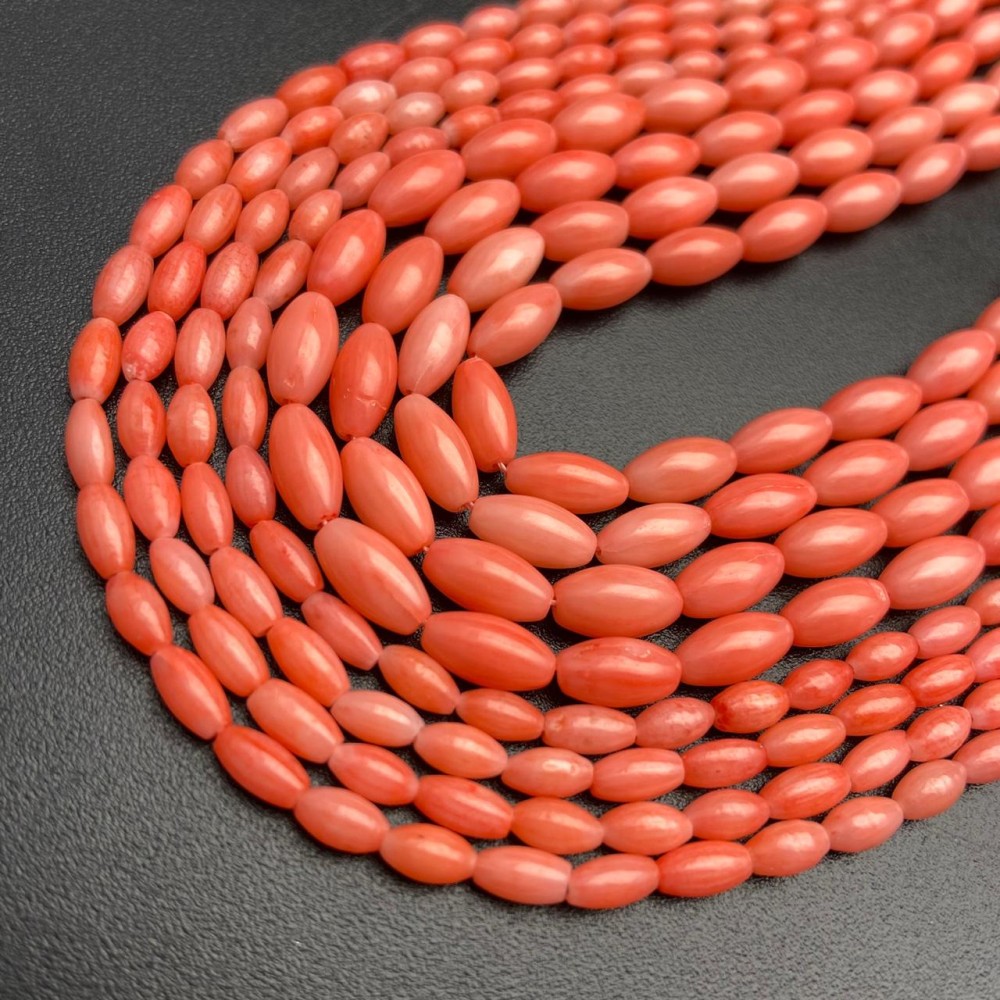 Каменные бусины, Коралл, рис, розовый, тонированный, 9х5 мм, длина нити 38 см