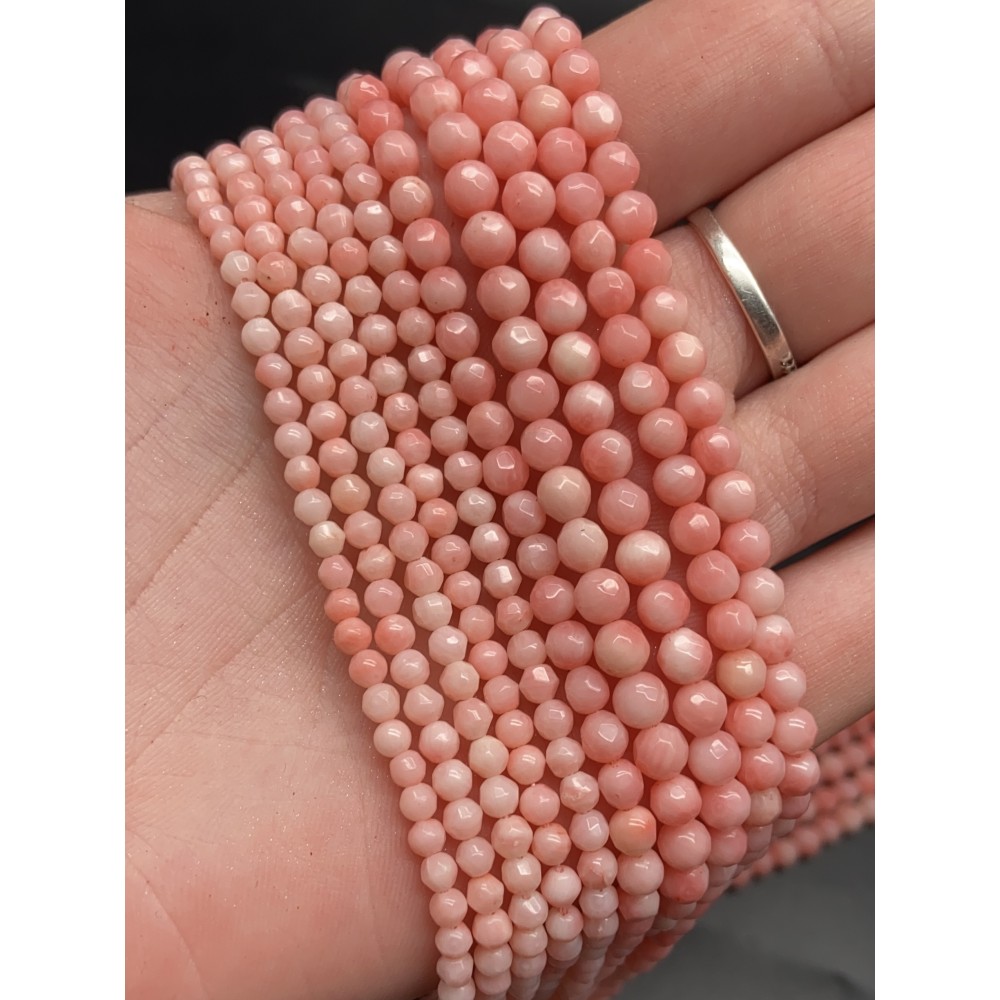 • Каменные бусины, Коралл, розовый, шарик огранка, 3 мм, длина нити 38 см