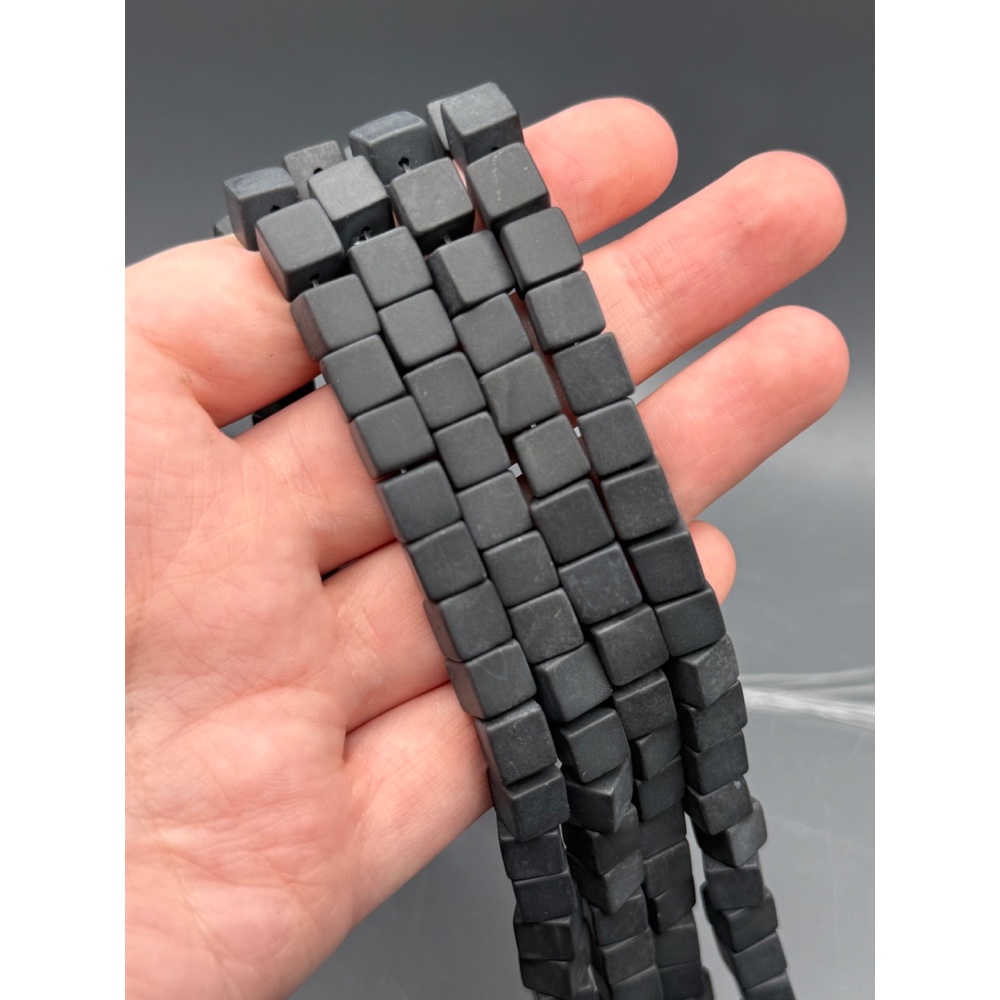 Теги: Каменные бусины, Агат, чёрный, матовый, люкс, кубик гладкий, 8х8 мм, длина нити 38 см, 16014, Кубики