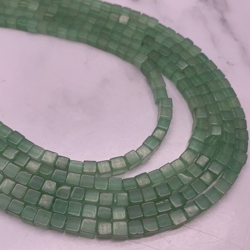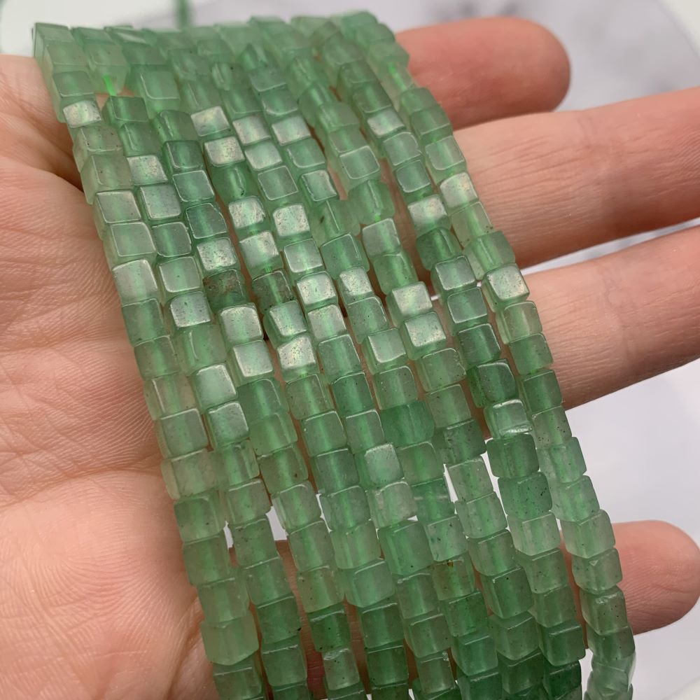 Каменные бусины, Авантюрин зеленый, натуральный, кубик гладкий, 4х4 мм, длина нити 38 см
