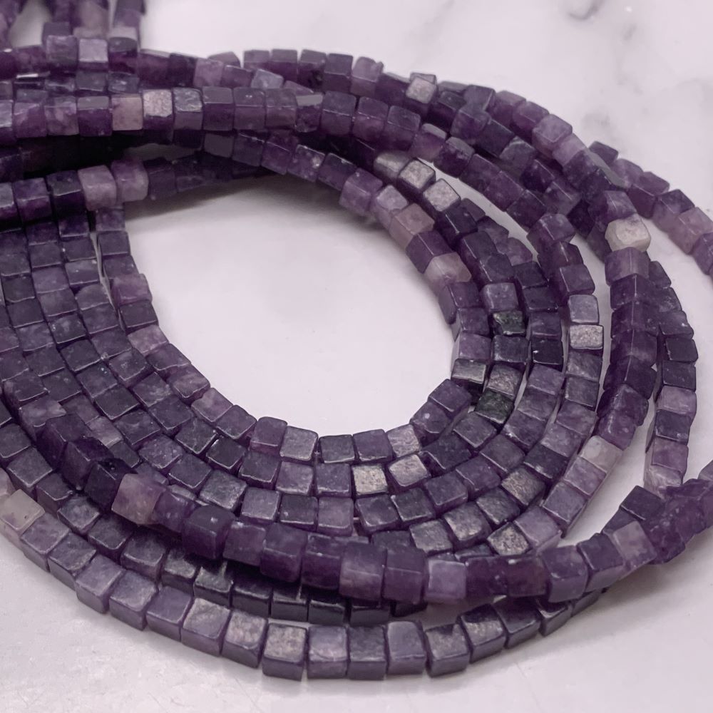 Каменные бусины, Лепидолит, кубик гладкий, 4х4 мм, длина нити 38 см