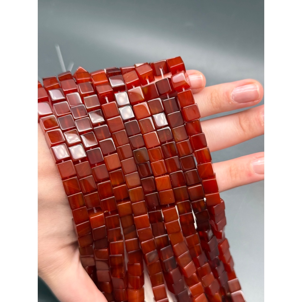 Каменные бусины, Сердолик (Карнеол), люкс, кубик гладкий, 8х8 мм, длина нити 39 см