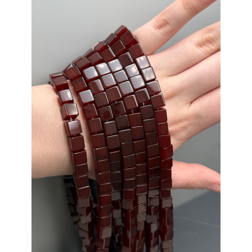 Каменные бусины, Сердолик (Карнеол), люкс, темный, кубик гладкий, 8х8 мм, длина нити 39 см