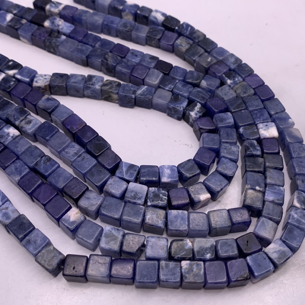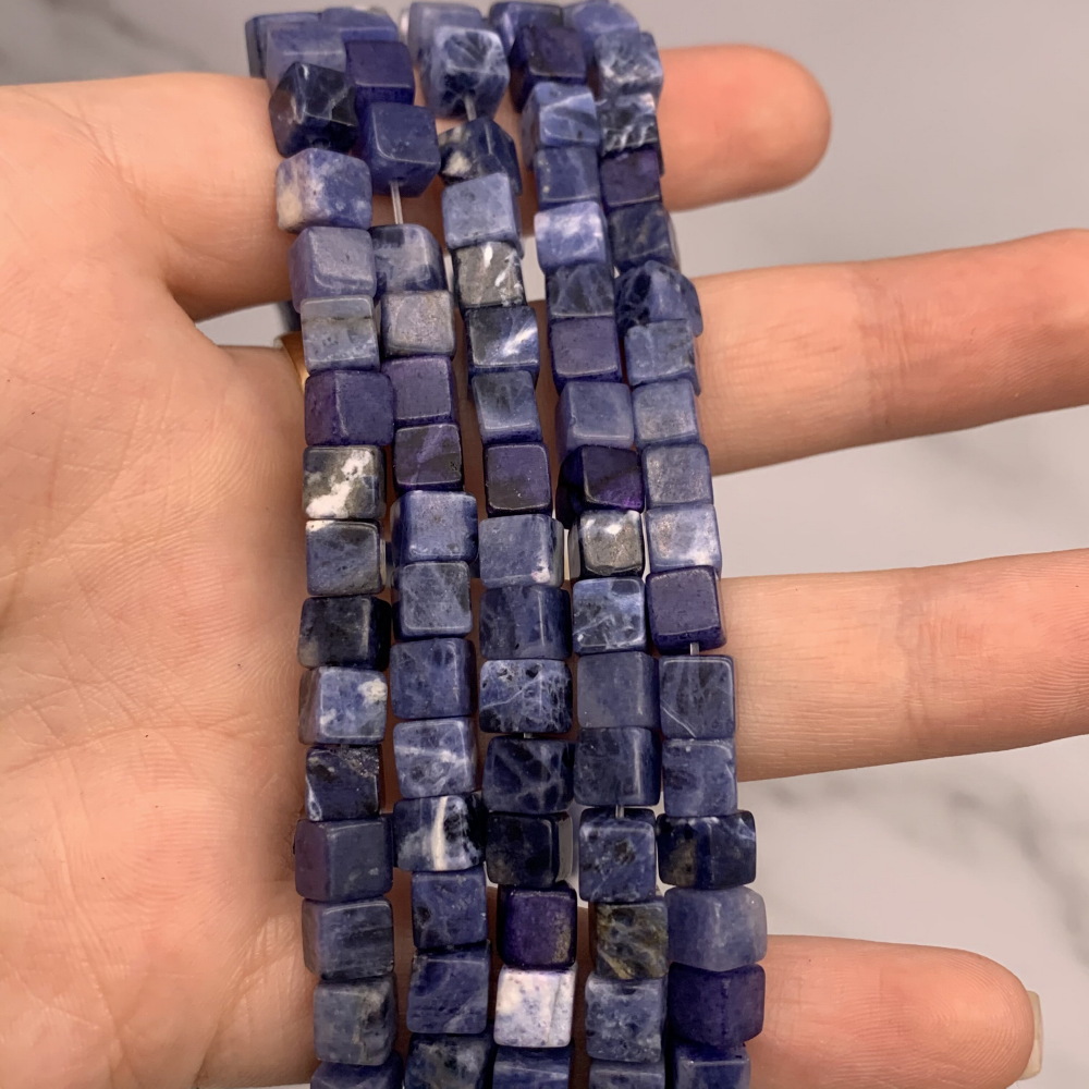 Каменные бусины, Содалит, кубик гладкий, 6х6 мм, длина нити 38 см