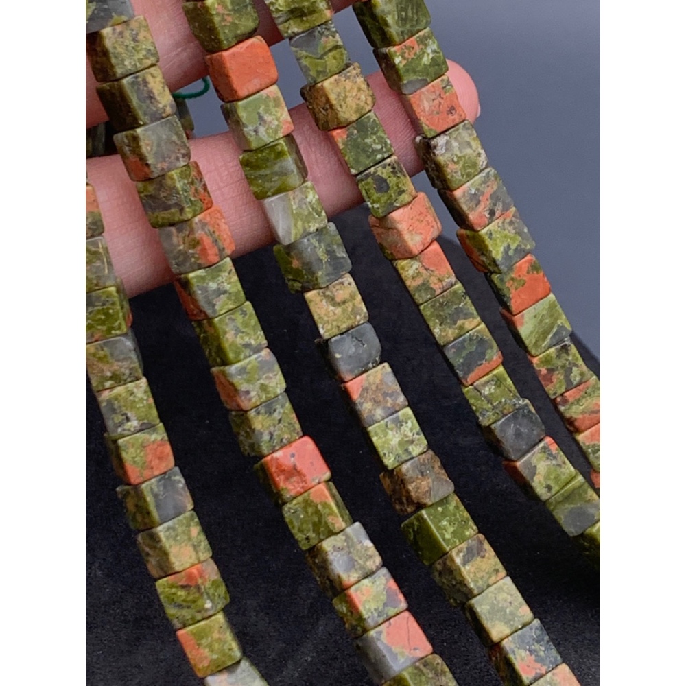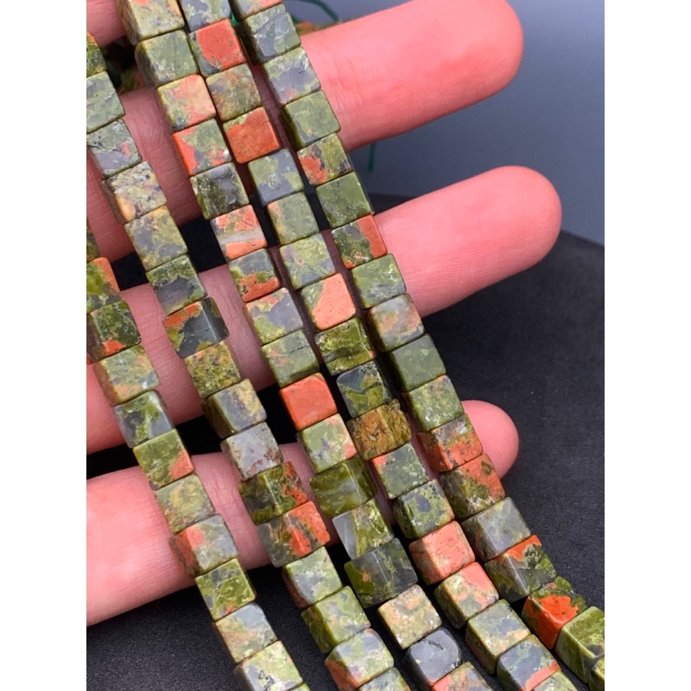 • Каменные бусины, Унакит, кубик гладкий, 6х6 мм, длина нити 38 см