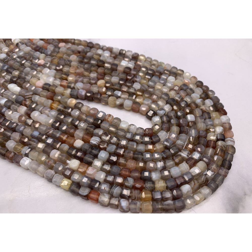 • Каменные бусины, Агат Ботсвана, кубик, зеркальная огранка, 4х4 мм, длина нити 38 см