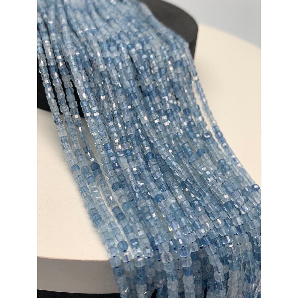• Каменные бусины, Аквамарин, голубой берилл, кубик, ювелирная огранка, 2,3х2,3 мм, длина нити 38 см