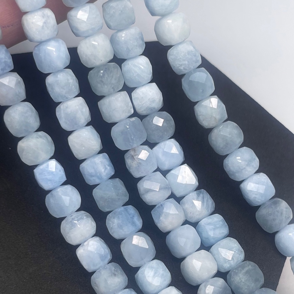 Каменные бусины, Аквамарин, Голубой Берилл, кубик огранка, 8,5х8,5 мм, длина нити 19 см
