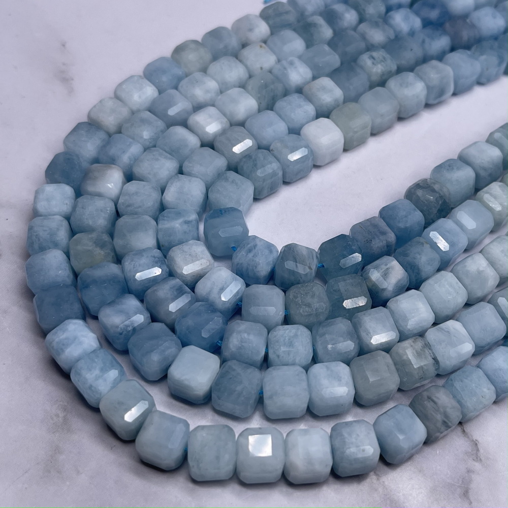 • Каменные бусины, Аквамарин, Голубой Берилл, люкс, кубик, зеркальная огранка, 9х9 мм, длина нити 38 см