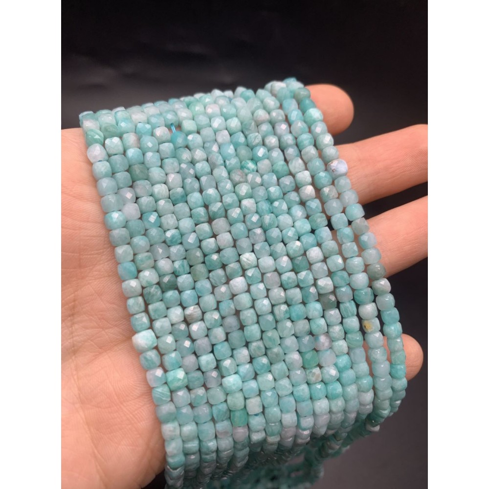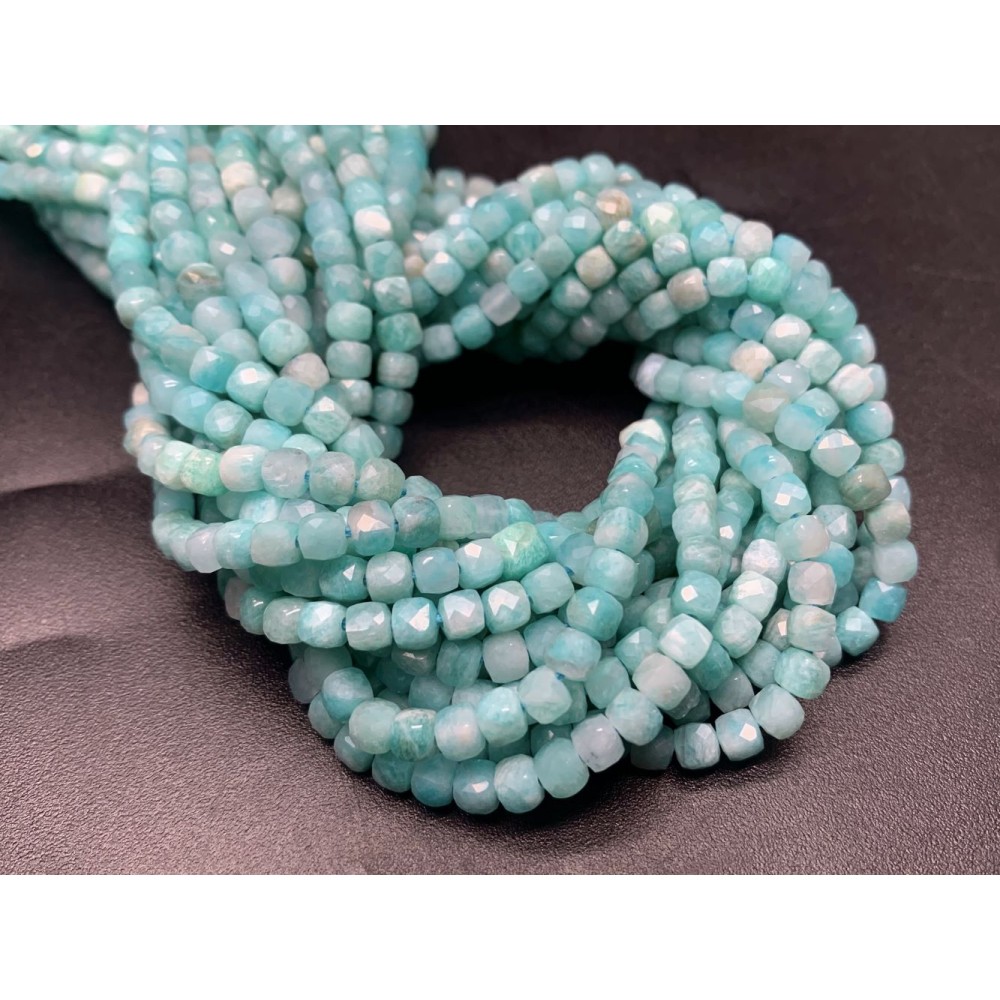 • Каменные бусины, Амазонит, кубик огранка, 4х4 мм, длина нити 38 см