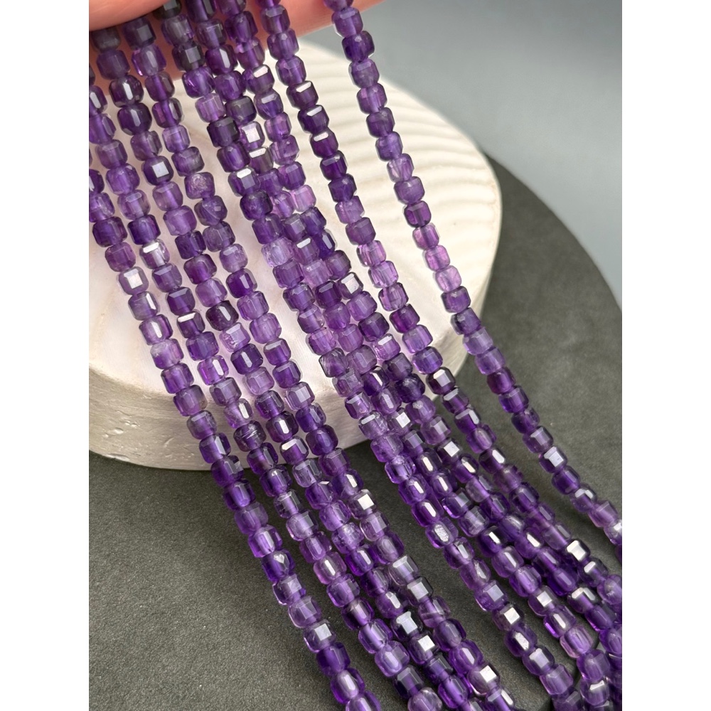 • Каменные бусины, Аметист, кубик, зеркальная огранка, 4х4 мм, длина нити 38 см