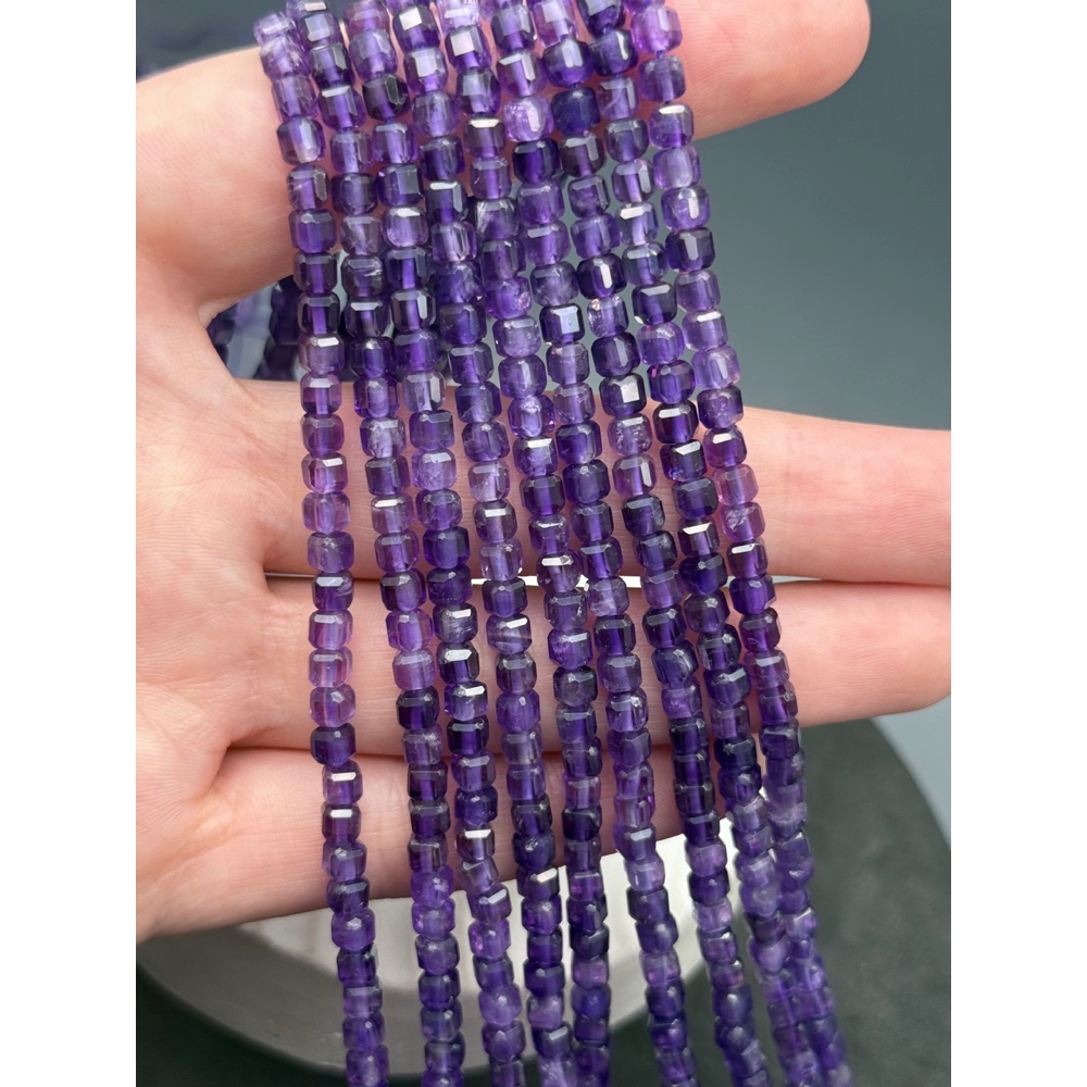 Теги: Каменные бусины, Аметист, кубик, зеркальная огранка, 4х4 мм, длина нити 38 см, 20873, Кубики