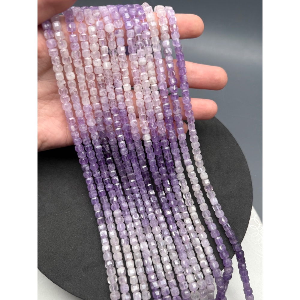 Теги: Каменные бусины, Аметист, лавандовый, кубик, зеркальная огранка, 4, 5 мм, длина нити 39 см, 14803, Кубики