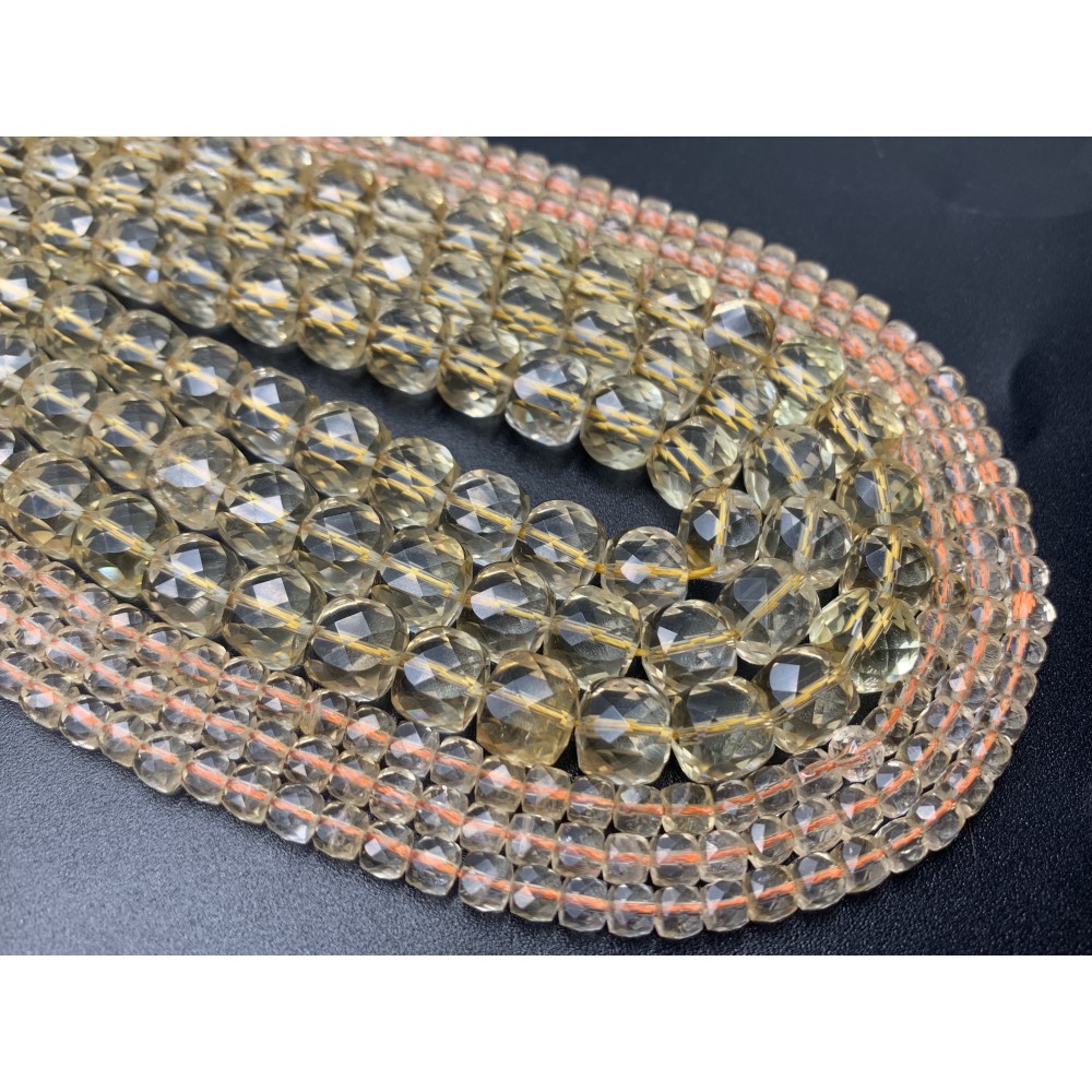 Каменные бусины, Цитрин, кубик, в ювелирной огранке, 8х8 мм, длина нити 19 см