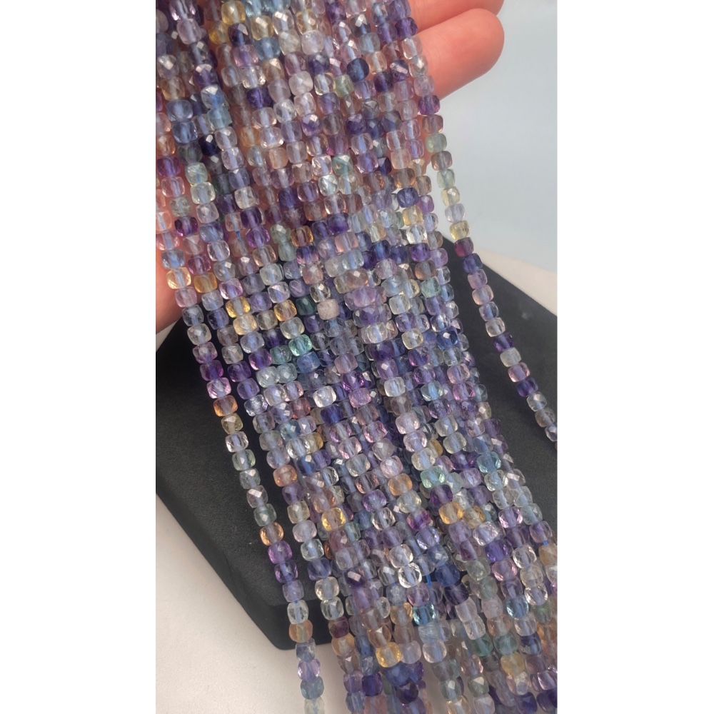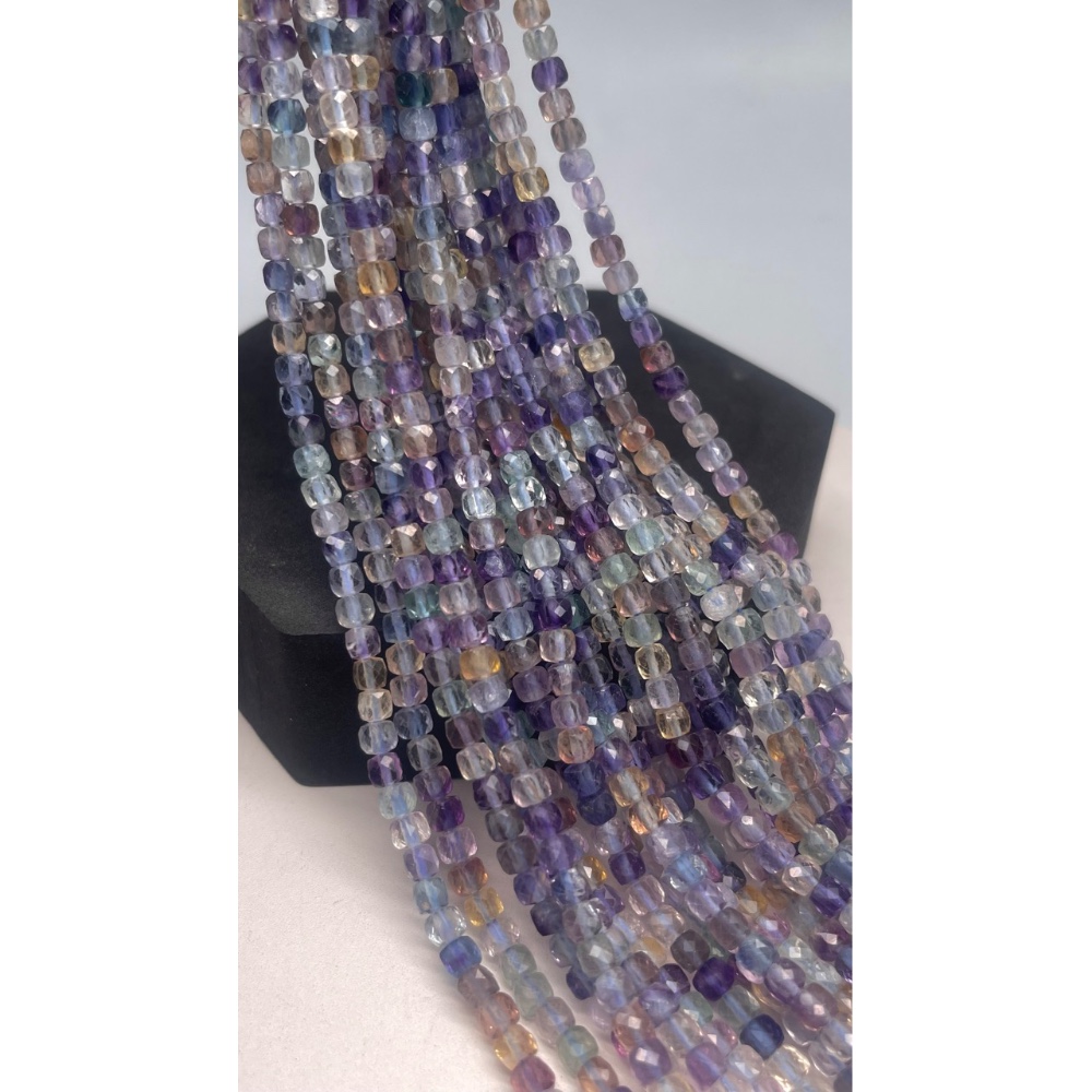 • Каменные бусины, Флюорит, кубик огранка, 4х4 мм, длина нити 38 см