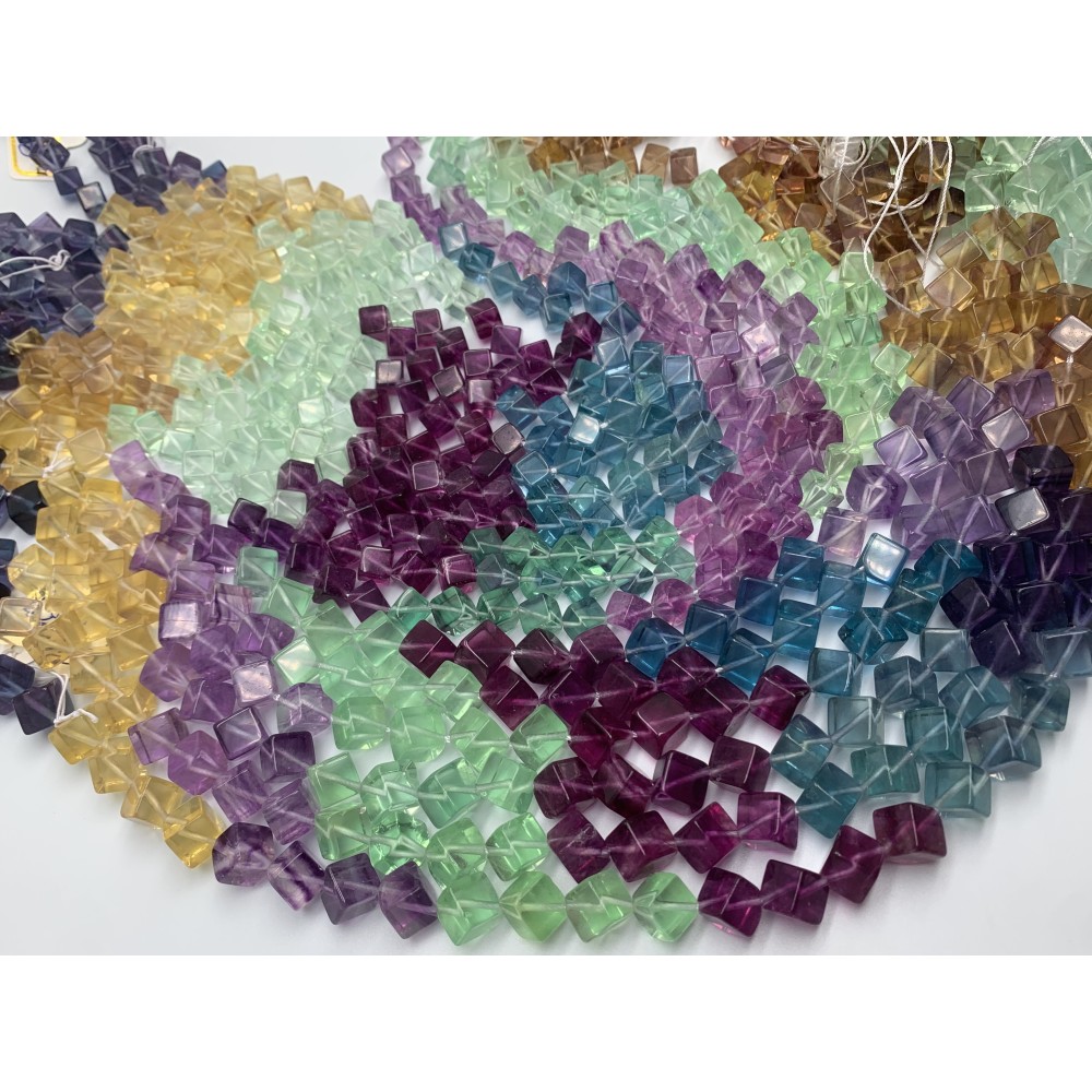 Каменные бусины, Флюорит люкс, кубик, 10 мм, длина нити 38 см