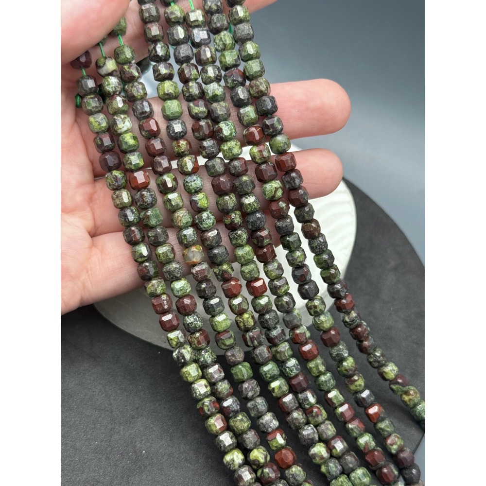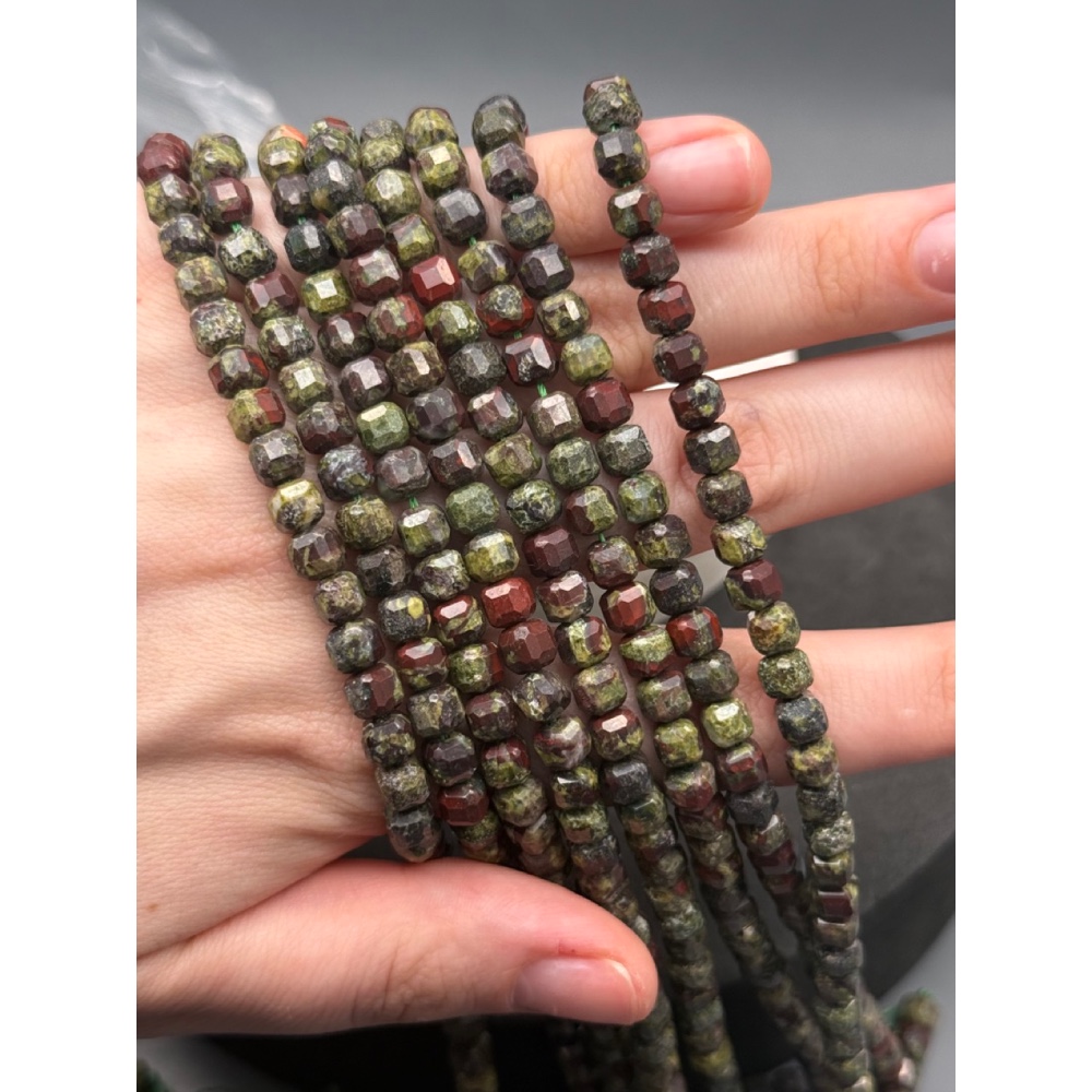 Каменные бусины, Гелиотроп, (Яшма "кровавая"), кубик, зеркальная огранка, 6 мм, длина нити 38 см
