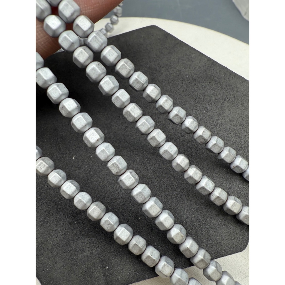Каменные бусины, Гематит синтетический, многогранник, серебро, матовый, размер 4х4 мм, нить 38 см
