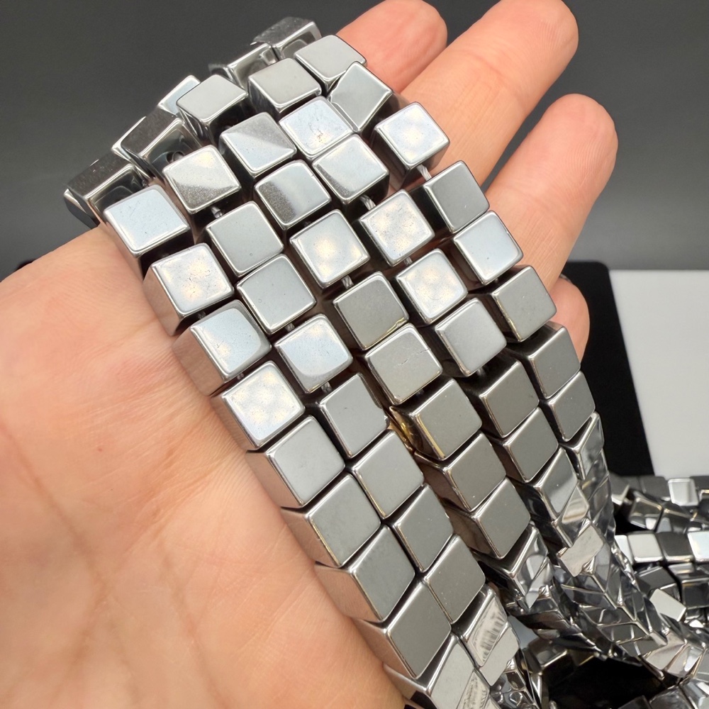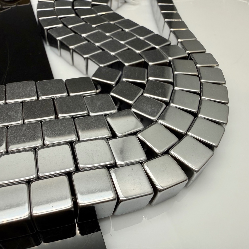 Каменные бусины, Гематит синтетический, серебро, кубик, размер 8х8 мм, нить 40 см