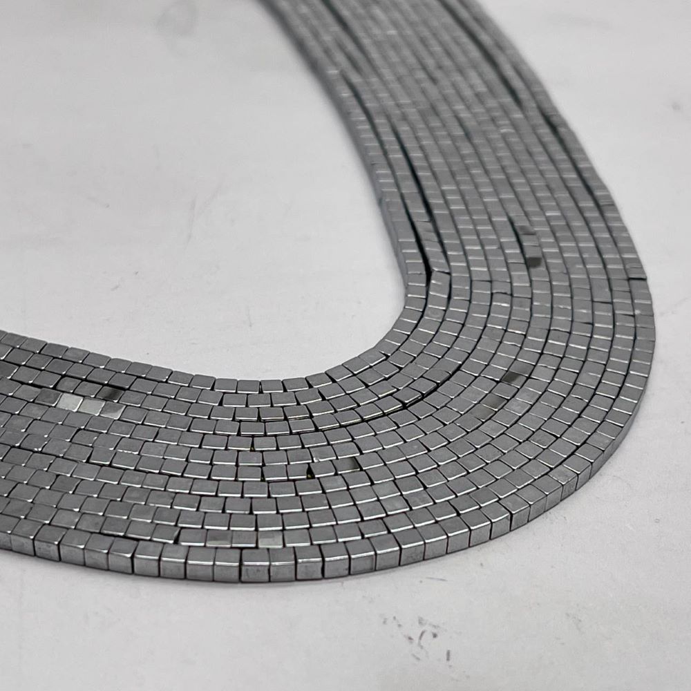 Каменные бусины, Гематит синтетический, серебро, кубик, размер 2х2 мм, нить 38 см