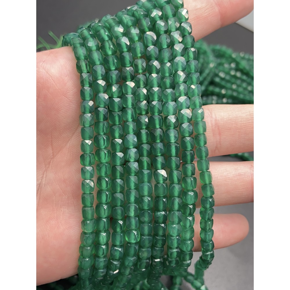 Теги: Каменные бусины, Халцедон, изумрудный, тонированный, кубик, огранка, 4х4 мм, длина нити 38 см, 14146, Кубики в огранке