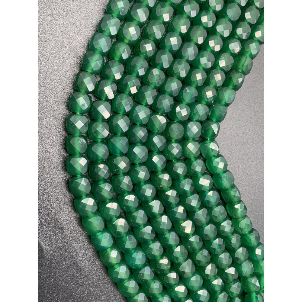 Теги: Каменные бусины, Халцедон, изумрудный, тонированный, кубик, огранка, 8, 5х8, 5 мм, длина нити 38 см, 12781, Кубики в огранке