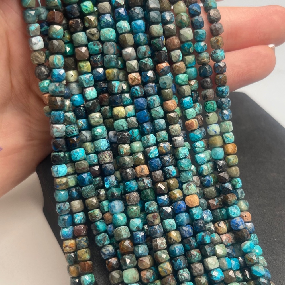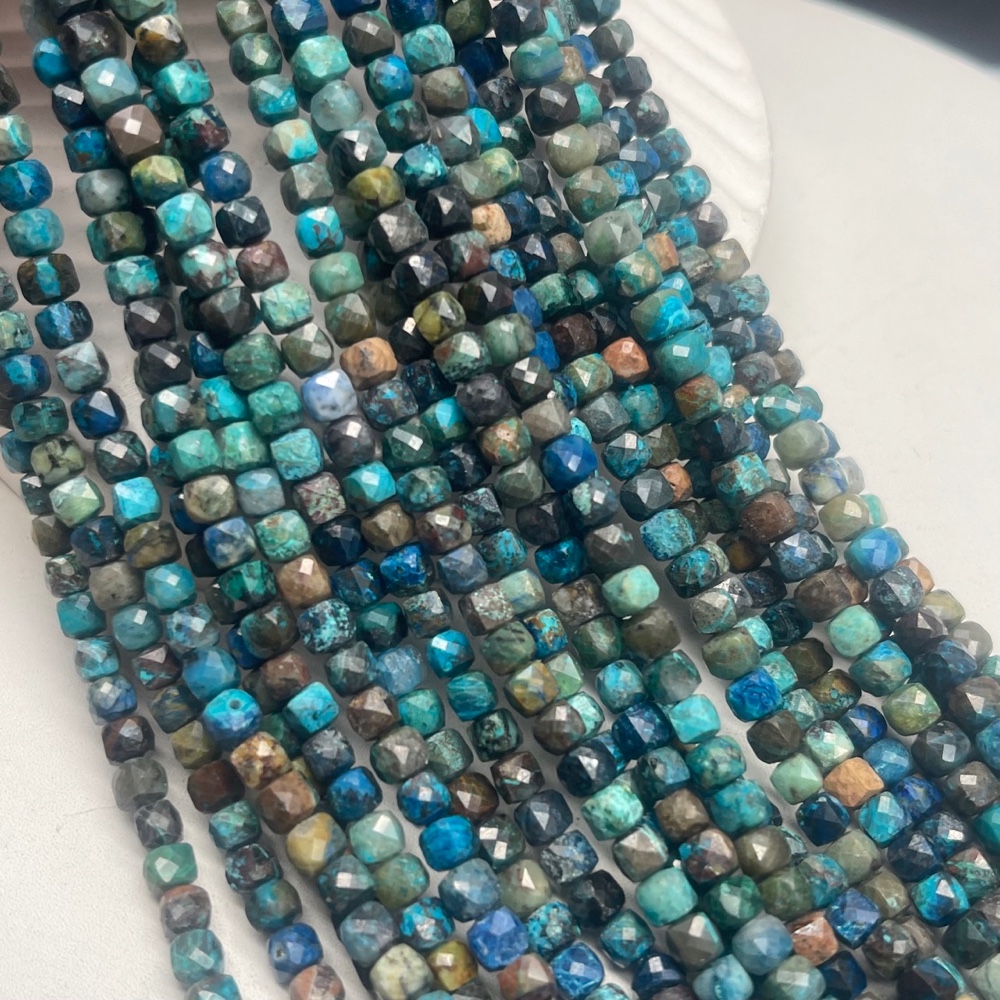 Каменные бусины, Хризоколла, люкс, кубик огранка, 4,5х4,5мм, длина нити 38 см 0 1720 ₽