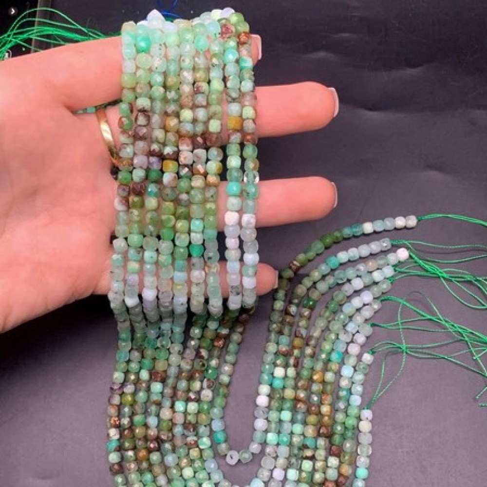 • Каменные бусины, Хризопраз, кубик, ювелирная огранка, 5х5 мм, длина нити 38 см