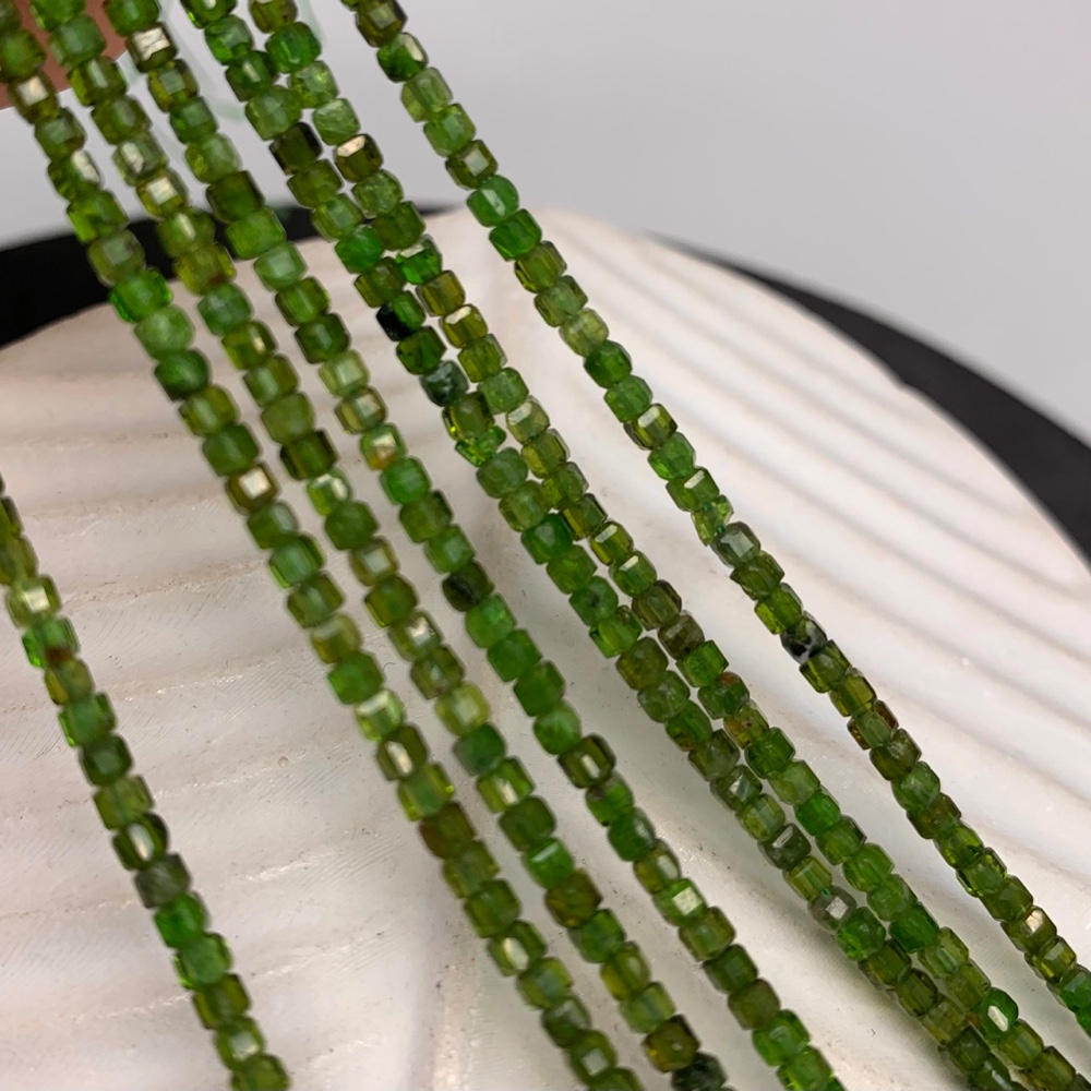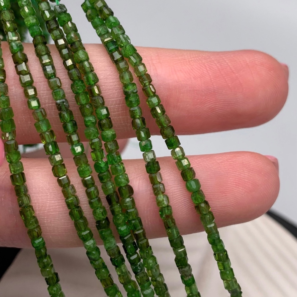 Каменные бусины, Хромдиопсид, кубик, в ювелирной огранке, 2,3х2,3 мм, длина нити 38 см