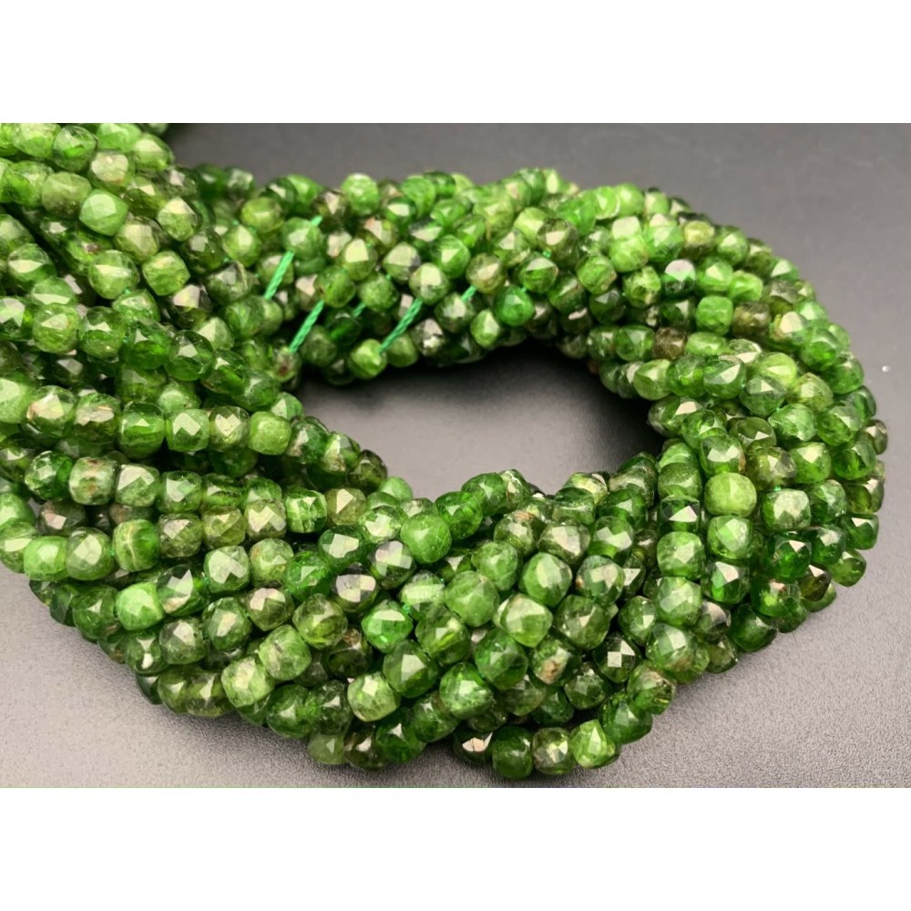 Каменные бусины, Хромдиопсид, кубик, в ювелирной огранке, 4х4 мм, длина нити 38 см