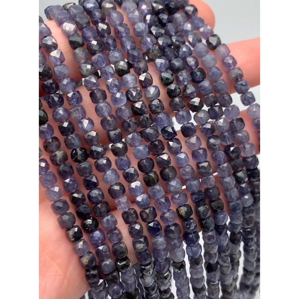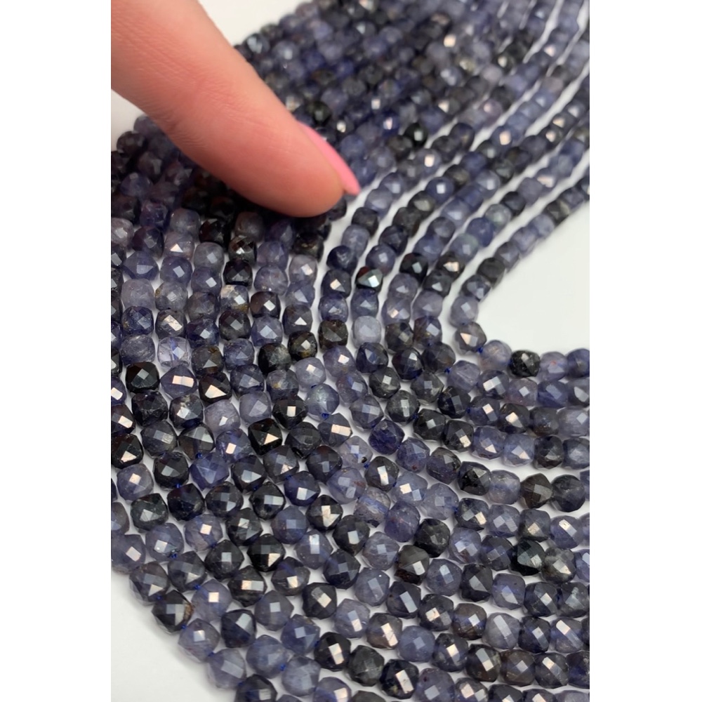 • Каменные бусины, Иолит (водяной сапфир), кубик, огранка, 4,5х4,5 мм, длина нити 38 см