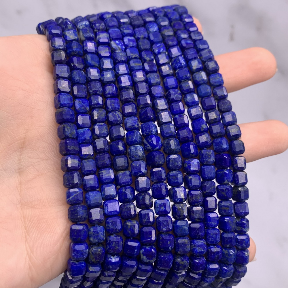 • Каменные бусины, Лазурит, люкс, кубик, зеркальная огранка, 5х5 мм, длина нити 38 см
