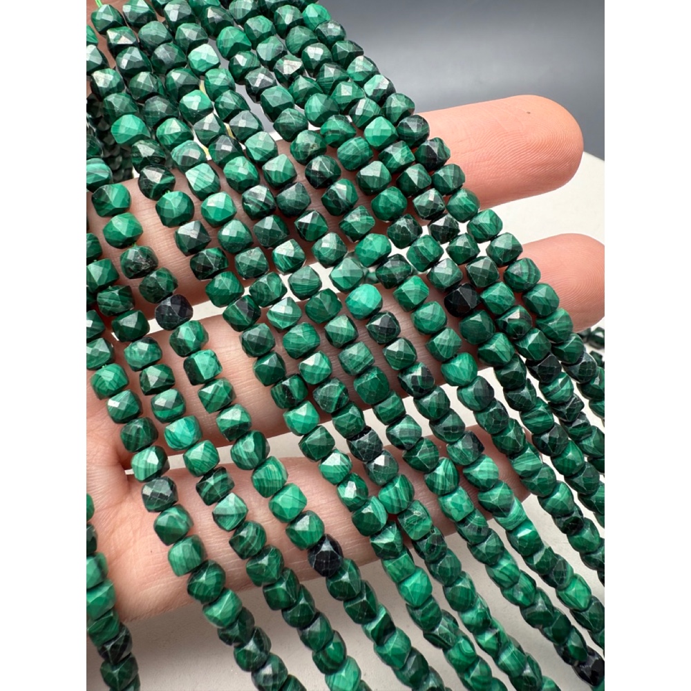 • Каменные бусины, Малахит (Конго), люкс, кубик, огранка, 4х4 мм, длина нити 38 см