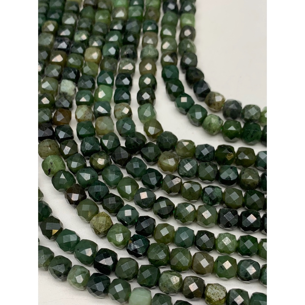 • Каменные бусины, Нефрит зеленый, (Россия), кубик, огранка, 6,5х6,5 мм, длина нити 40 см
