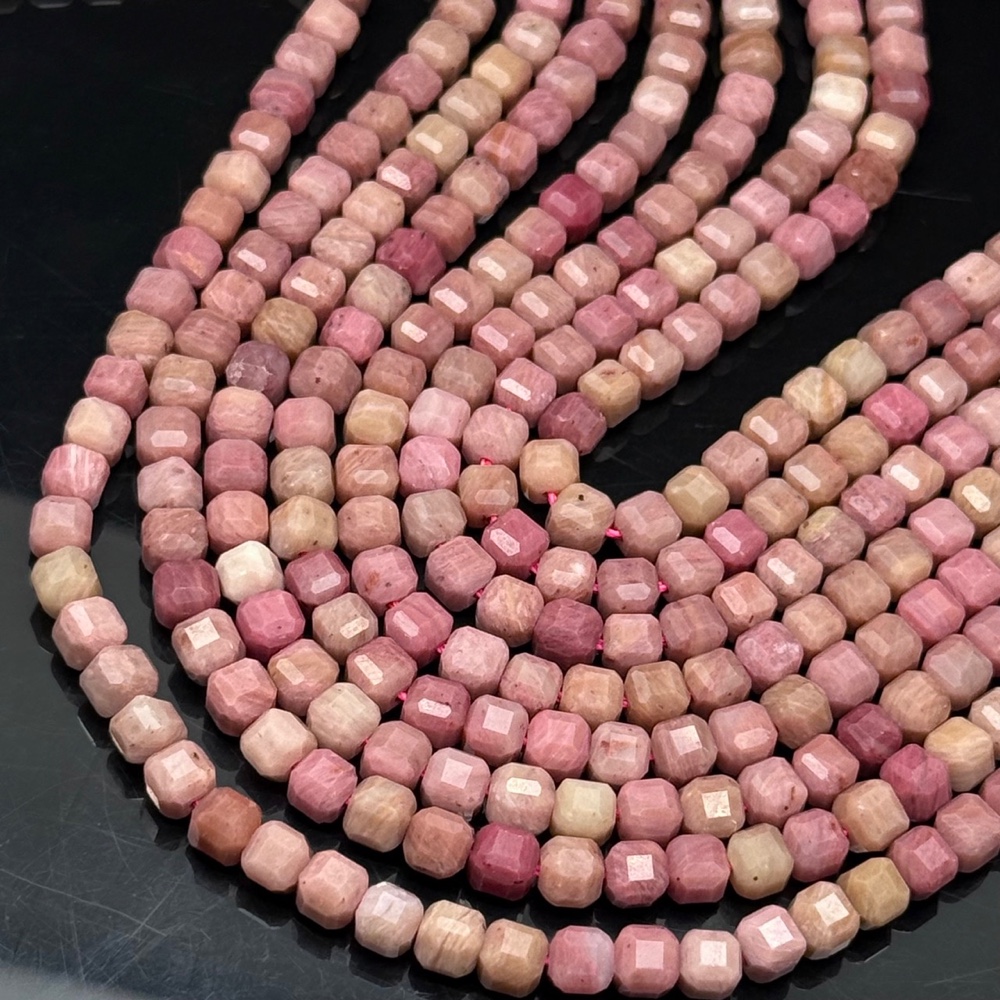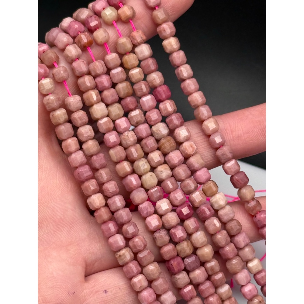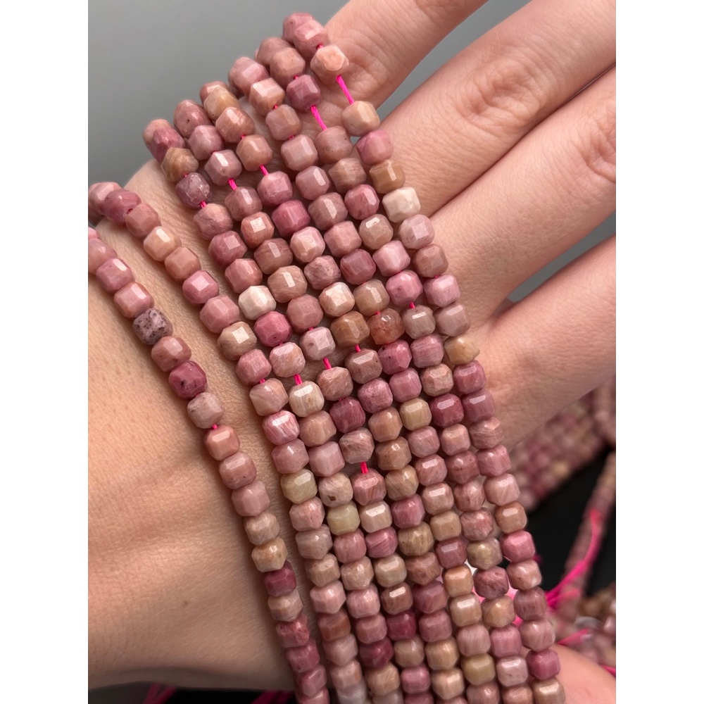 Теги: Каменные бусины, Родонит, кубик, зеркальная огранка, 5, 5 мм, длина нити 38 см, 21627, Кубики в огранке