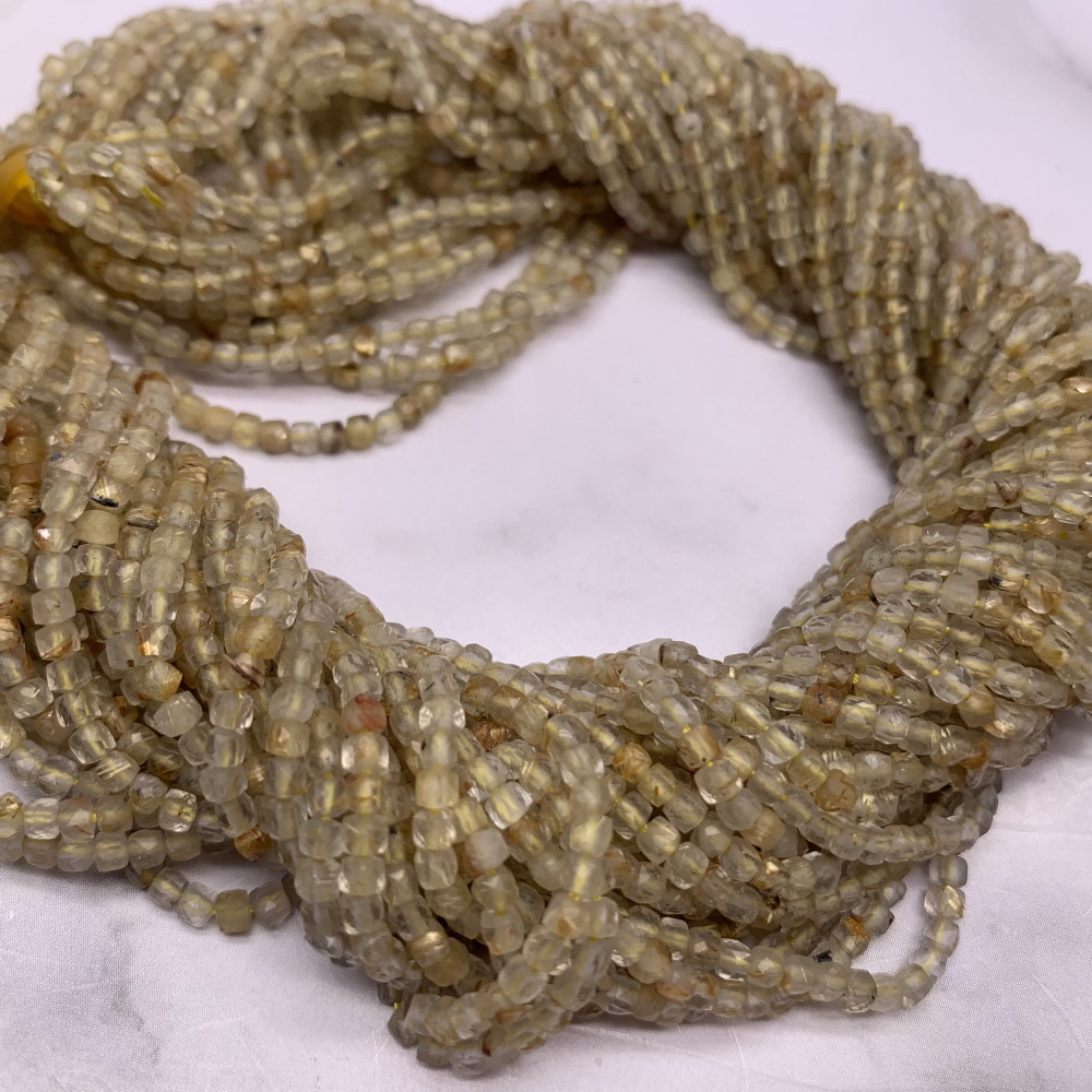 Каменные бусины, Рутиловый Кварц, кубик, ювелирная огранка, 2х2 мм, длина нити 38 см
