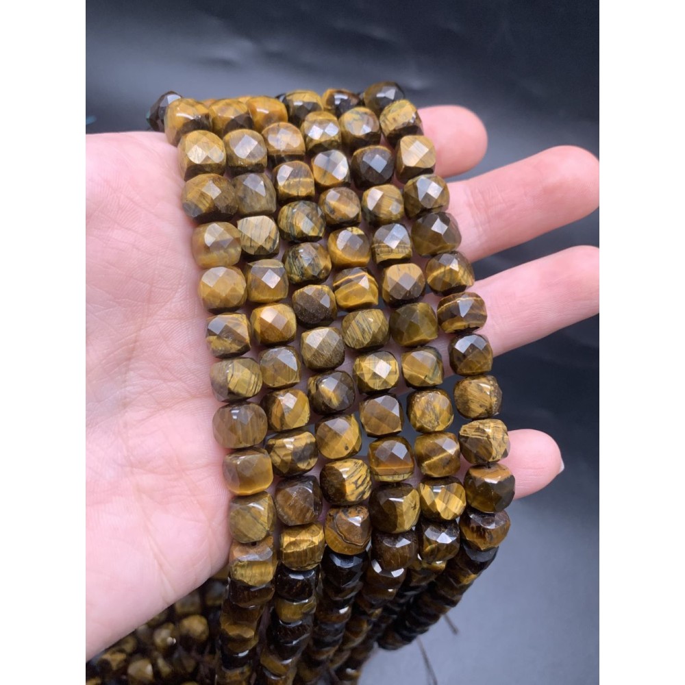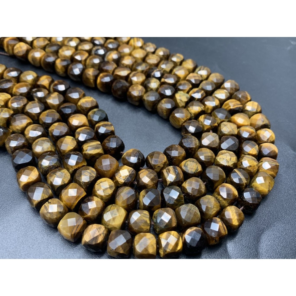Каменные бусины, Тигровый глаз, кубик огранка, 8,5х8,5 мм, длина нити 38 см