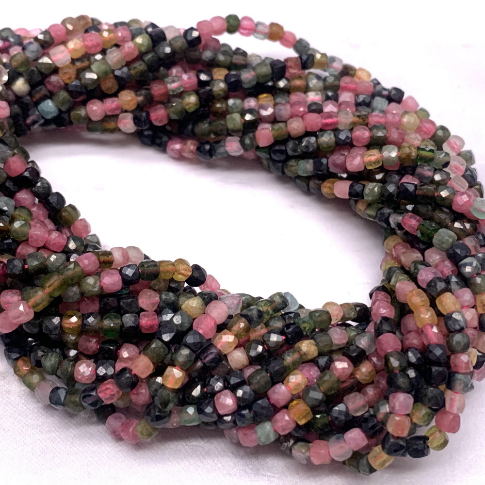 Каменные бусины, Турмалин, кубик, ювелирная огранка, 2х2 мм, длина нити 38 см