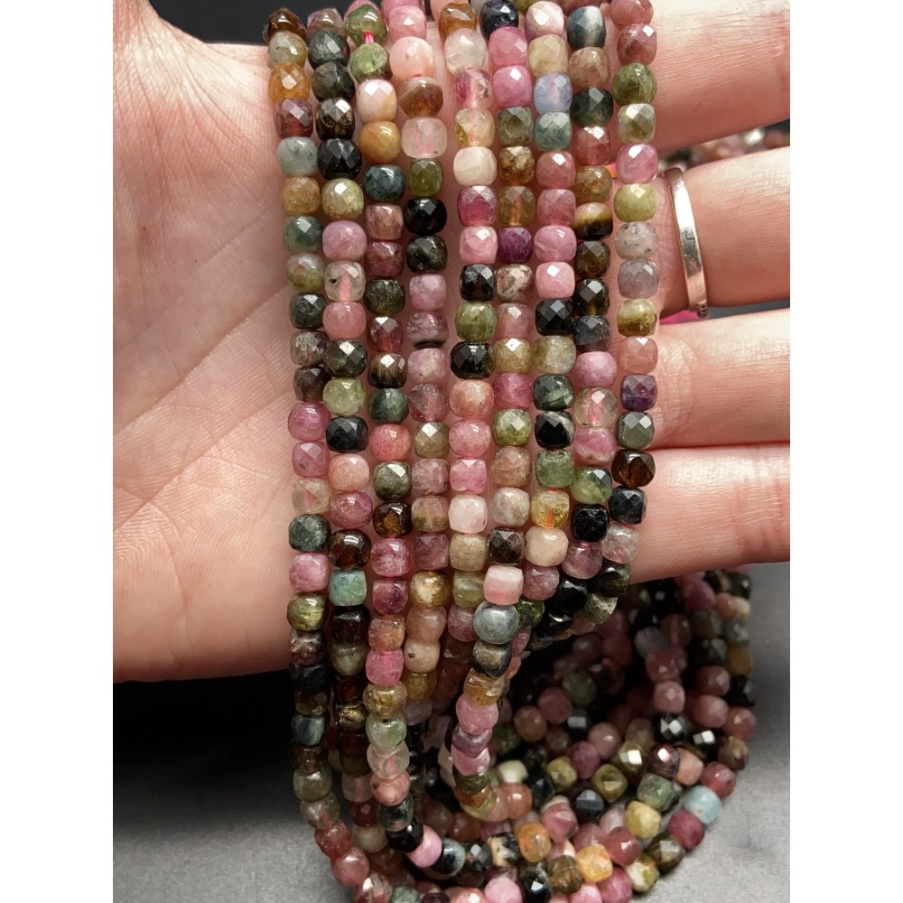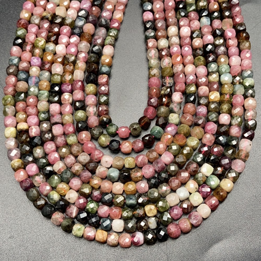 Каменные бусины, Турмалин, люкс, кубик, огранка, 4,5х4,5 мм, длина нити 38 см