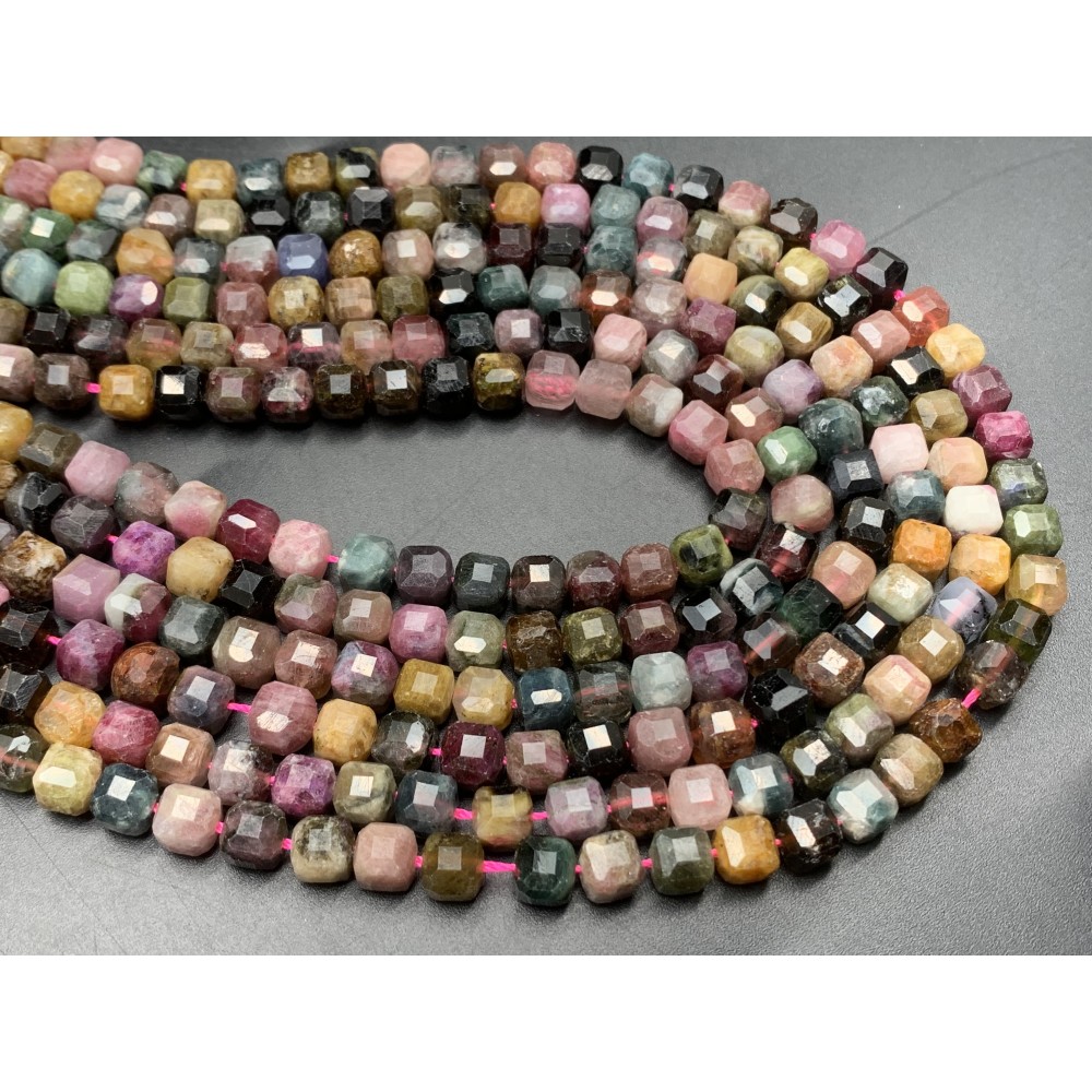 Каменные бусины, Турмалин, зеркальная огранка, кубик, 5х5 мм, длина нити 38 см
