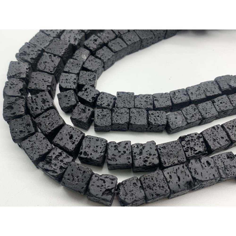Каменные бусины, Вулканическая лава, черная, кубик 8х8 мм, длина нити 38 см