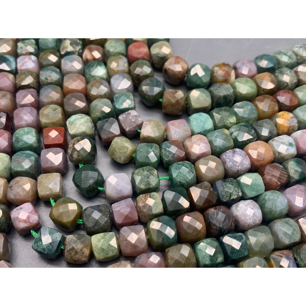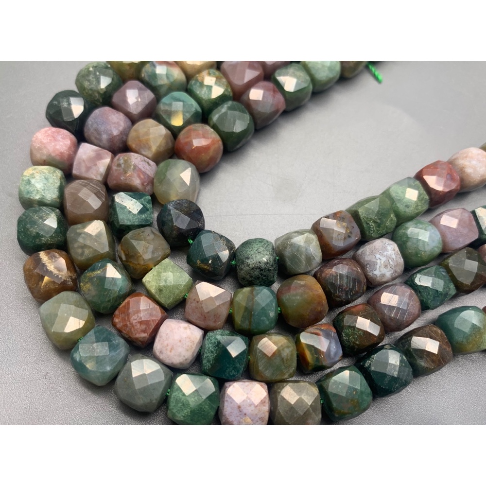 Каменные бусины, Яшма, зелёная, индийская, кубик в ювелирной огранке,8,5х8,5 мм, длина нити 38 см