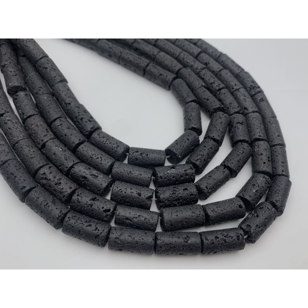 • Каменные бусины, Вулканическая лава, черная, столбики, 4х13 мм, длина нити 38 см