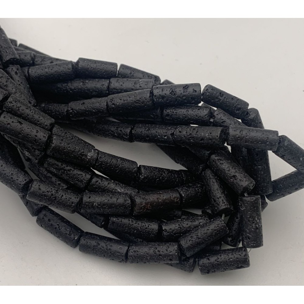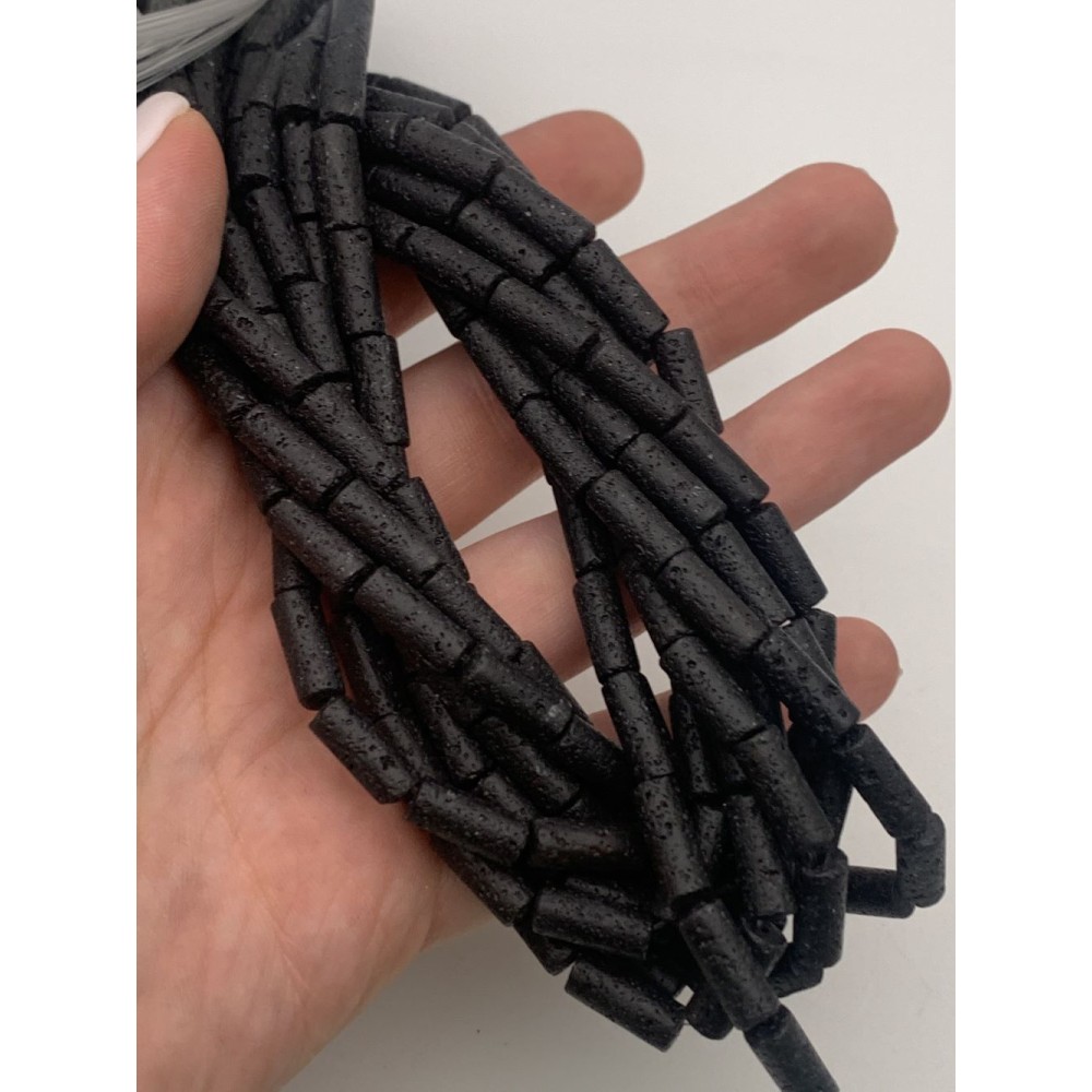 Каменные бусины, Вулканическая лава, черная, столбики, 8х16 мм, длина нити 38 см